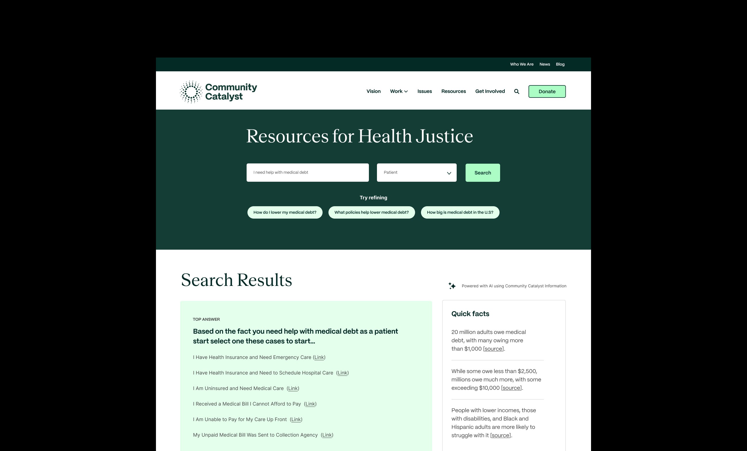 Finding reliable and relevant community health resources can be a struggle for those in need. AI-powered search curates and presents personalized resource lists, connecting individuals directly with local support and services tailored to their specific health concerns.