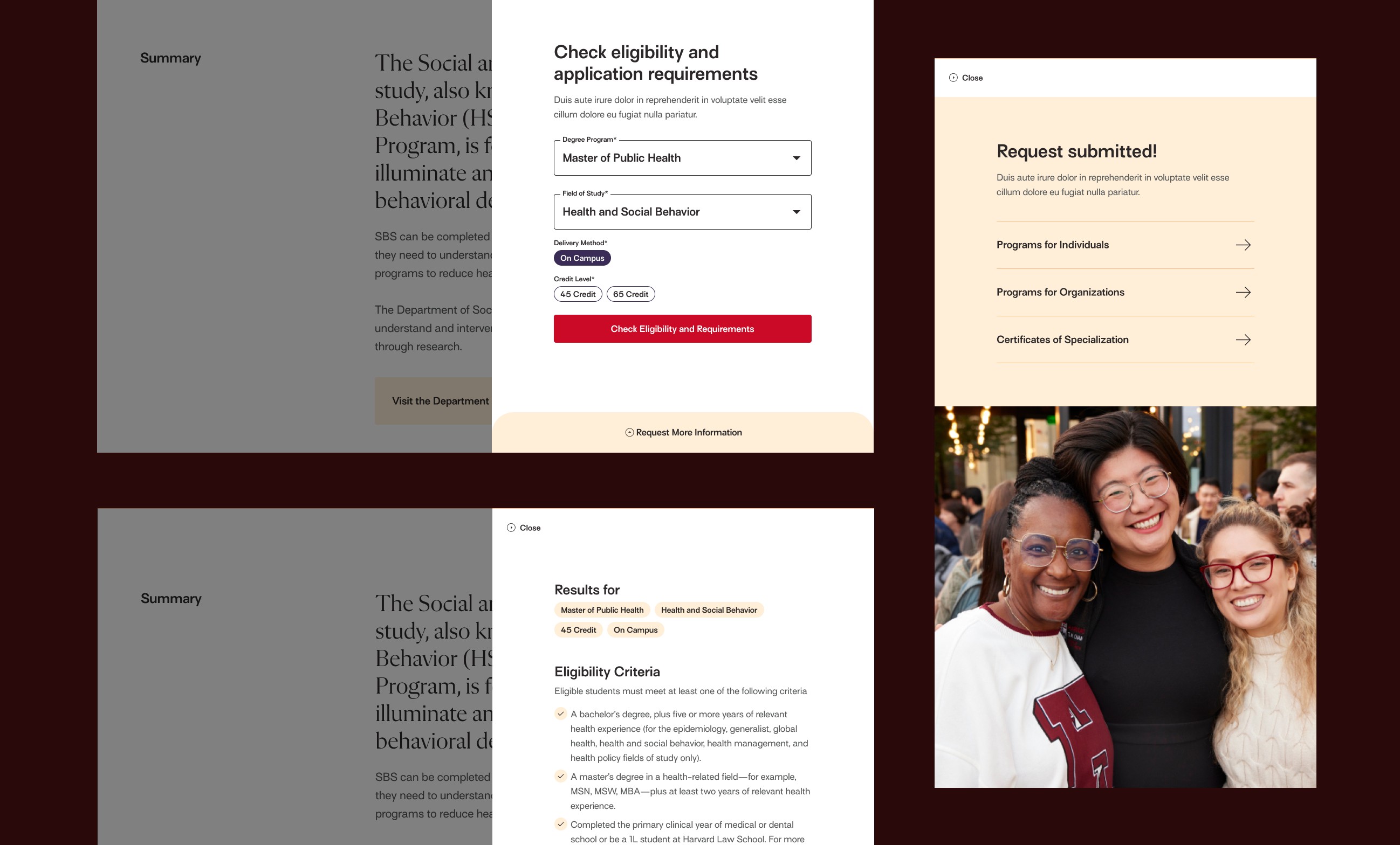 Harvard Chan School solves global health challenges through research and education. But their digital presence told a different story. Despite housing passionate students and researchers working on humanity's biggest health problems, the school's brand felt cold and institutional. What was worse was that their application flow required applicants to use two different systems, which hindered applicants. Their community was hidden and the experience broken.